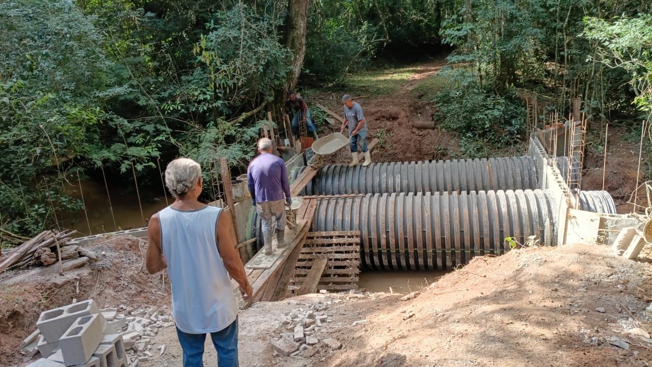 Responsável pela obra, a Secretaria Municipal de Serviços realizou a implantação de tubulação e a edificação de cabeceiras de concreto para escoamento do rio. Após este trabalho, o local foi aterrado e recebeu cascalhamento para travessia de pedestres.