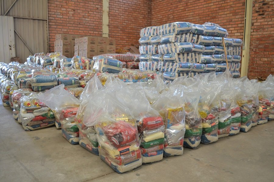 A cesta tem arroz, feijão, macarrão, óleo de soja e fubá, entre outros itens básicos que estavam em estoque. A direção entrou em contato com os pais e agendar a retirada.